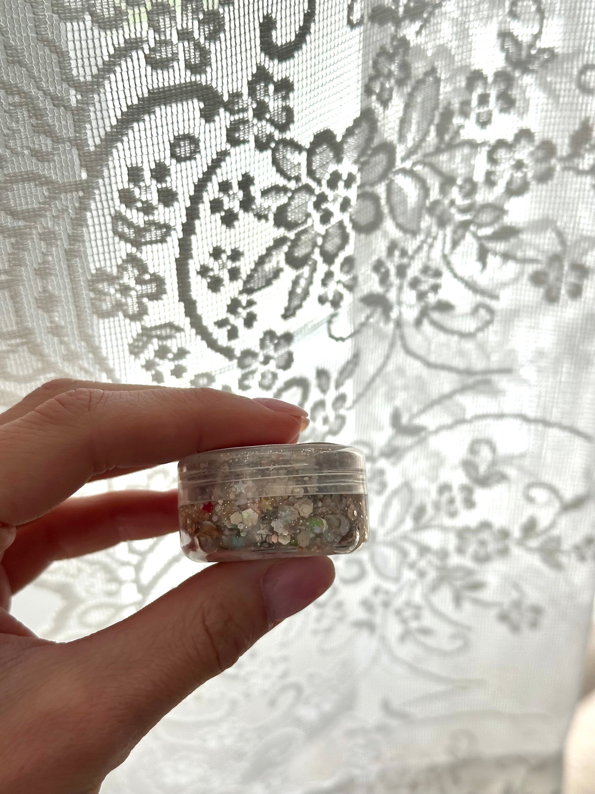 Aqua (Distilled Water), Xanthan Gum, Glycerin, Polyethylene Terephthalate (and) Polyurethane-11 (and) Aluminum Powder (Glitter), Phenoxyethanol (and) Caprylyl Glycol