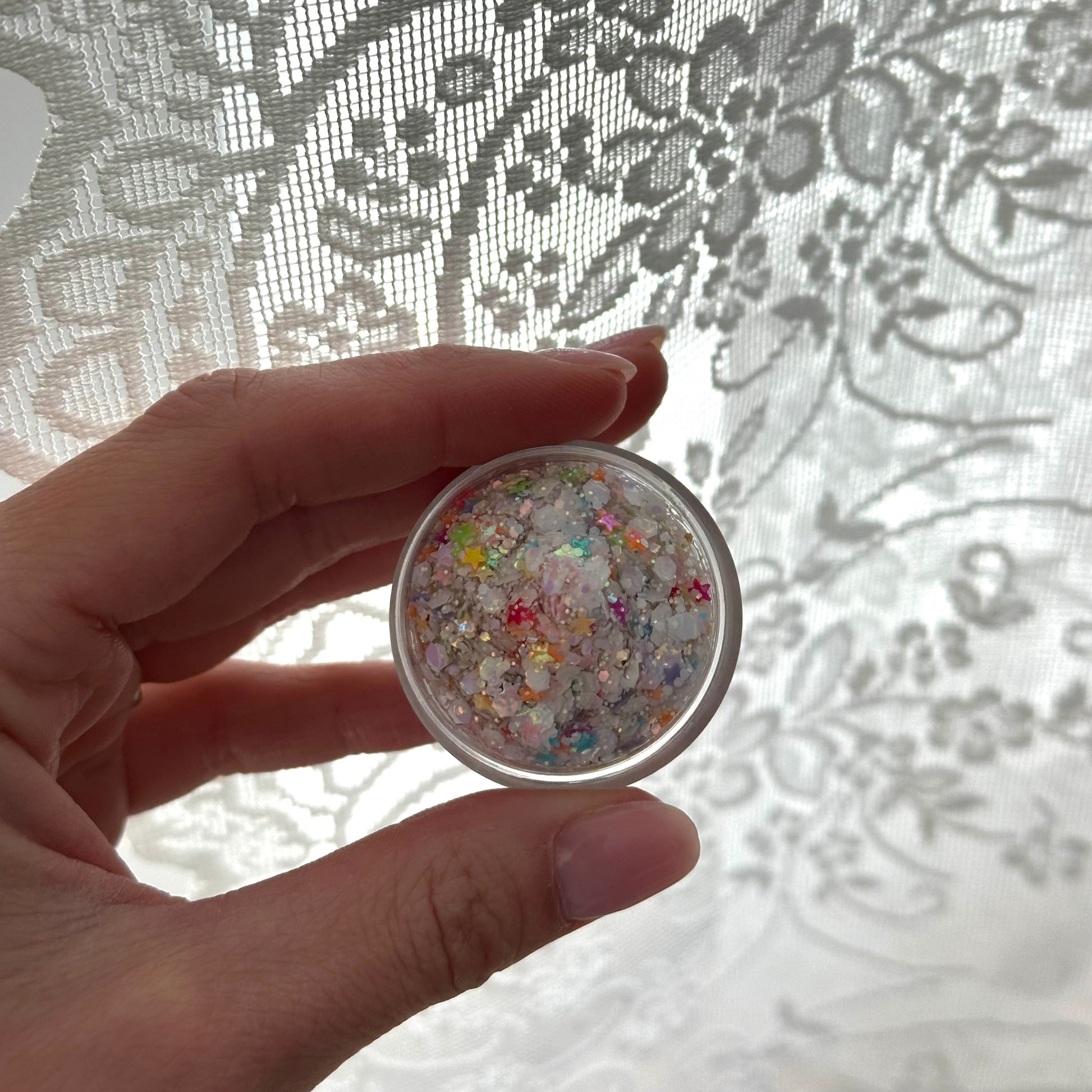 Aqua (Distilled Water), Xanthan Gum, Glycerin, Polyethylene Terephthalate (and) Polyurethane-11 (and) Aluminum Powder (Glitter), Phenoxyethanol (and) Caprylyl Glycol