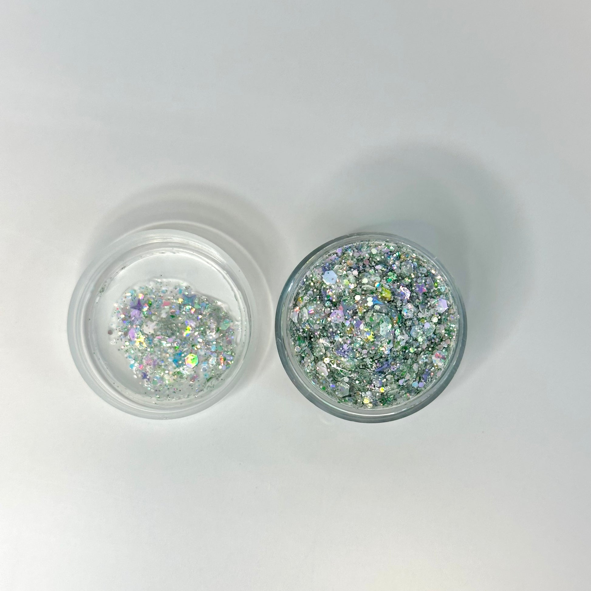 Aqua (Distilled Water), Xanthan Gum, Glycerin, Polyethylene Terephthalate (and) Polyurethane-11 (and) Aluminum Powder (Glitter), Phenoxyethanol (and) Caprylyl Glycol