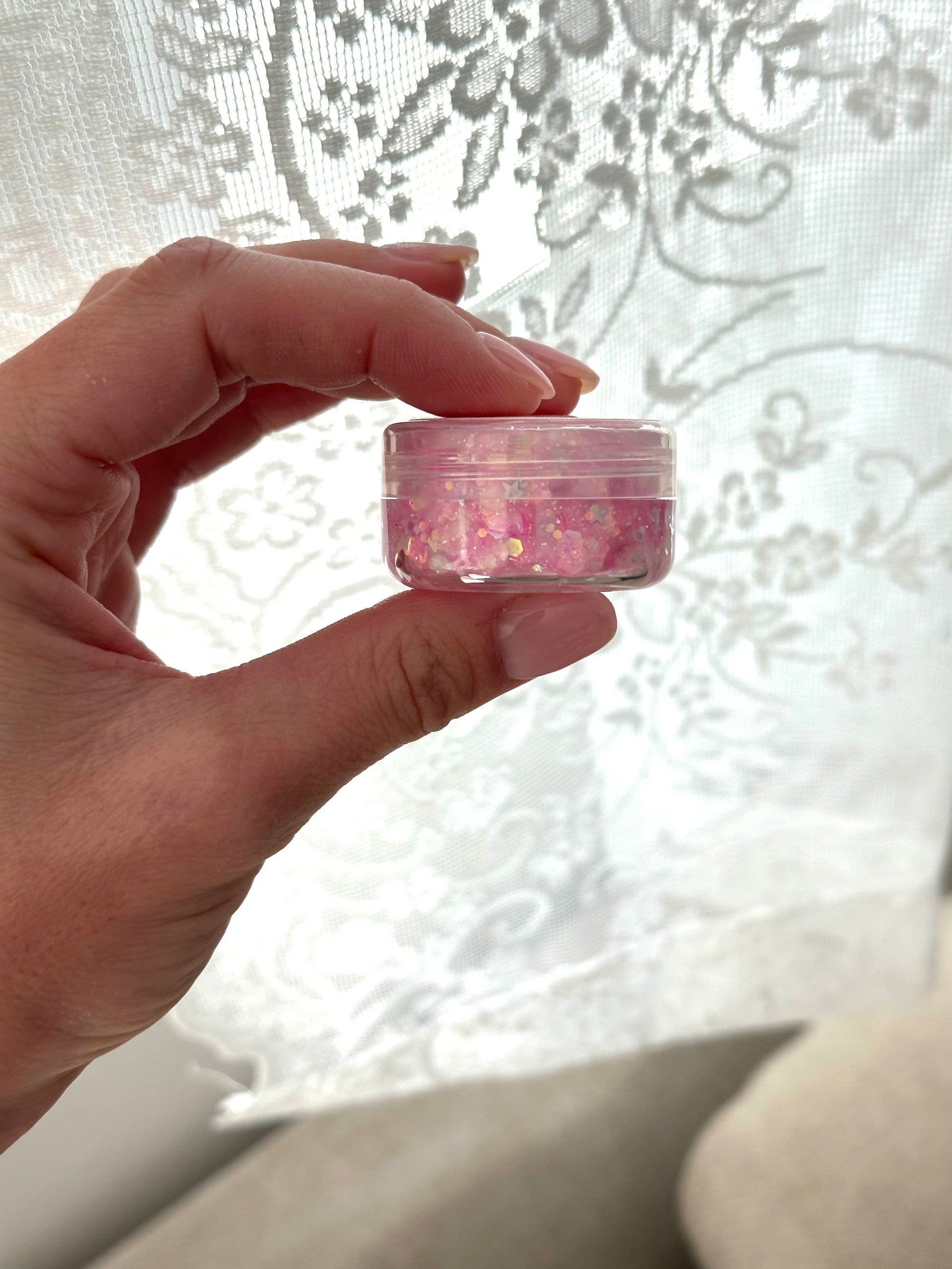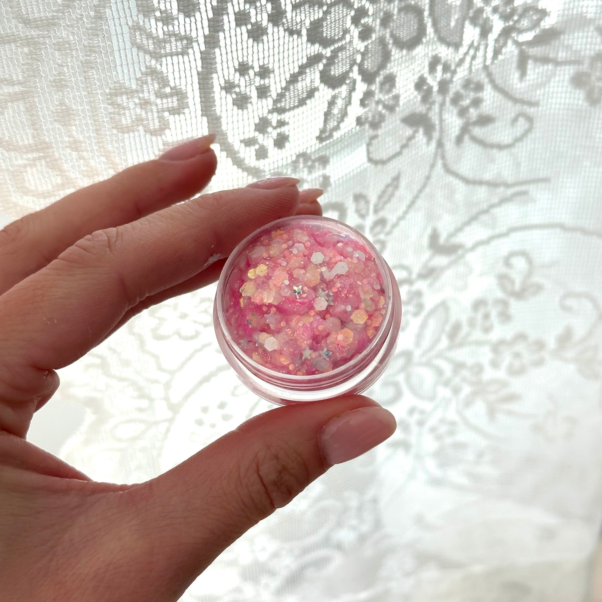 Opal and pink glitter with tint of gold and silver stars